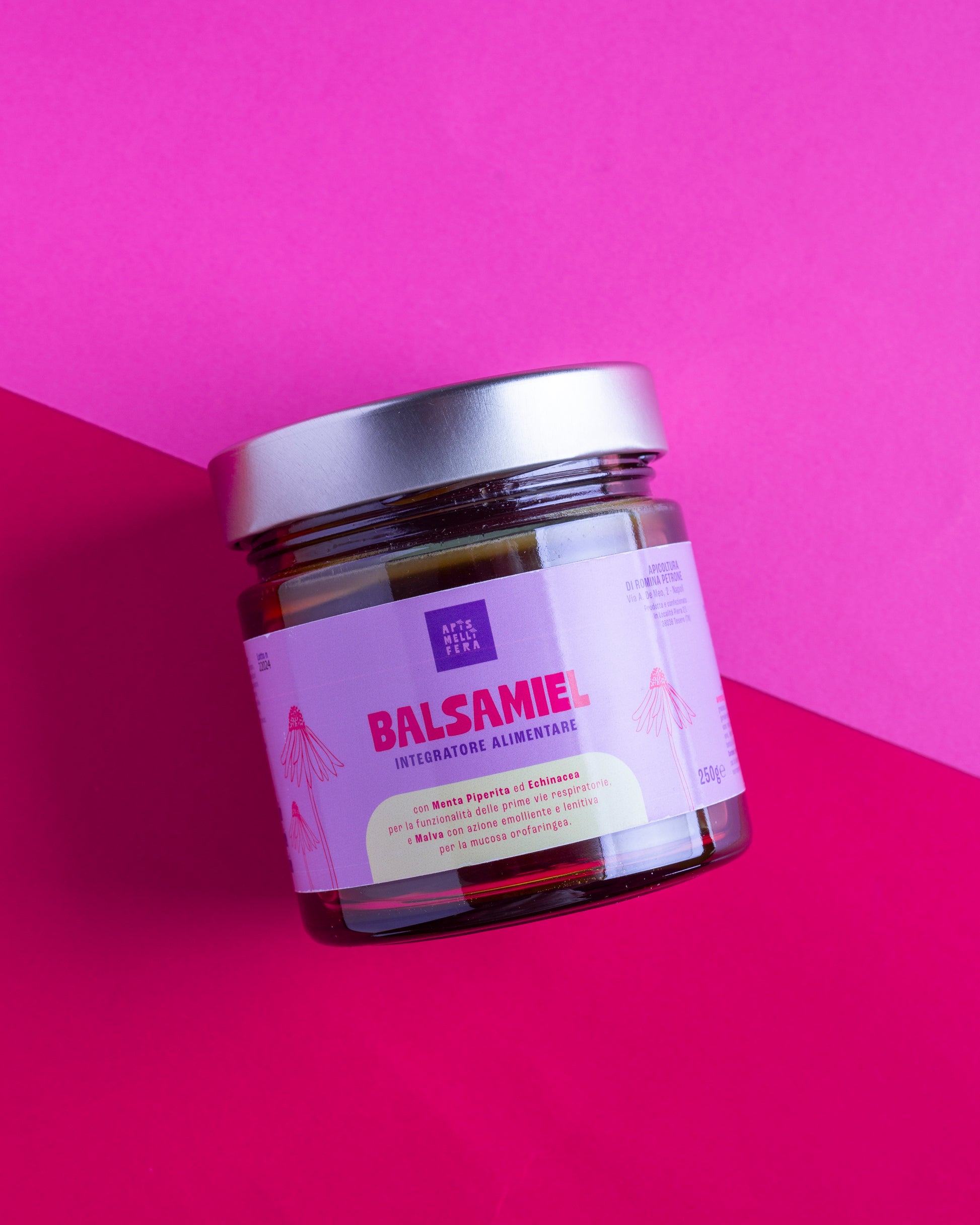 Il Balsamiel Apis Mellifera è un integratore alimentare a base di miele italiano di alta qualità, arricchito con fitoestratti ed oli essenziali. La menta piperita e l’echinacea contribuiscono alla funzionalità delle prime vie respiratorie, la malva ha un'azione emolliente e lenitiva per la mucosa orofaringea. Gli oli essenziali di pino silvestre ed eucalipto, con effetto balsamico, gli conferiscono la sua fragranza caratteristica