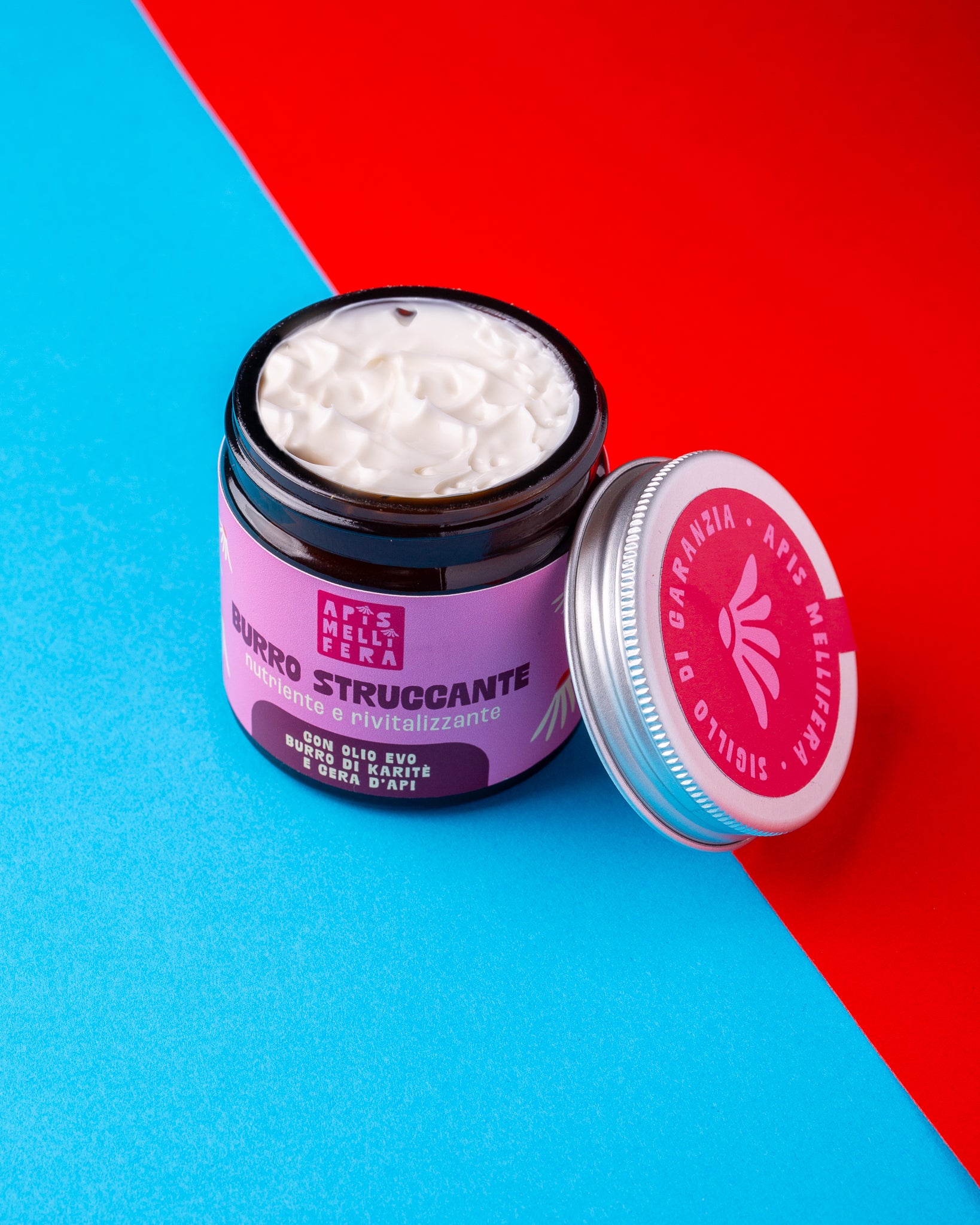 Il Burro Struccante Apis Mellifera è il segreto per una pulizia profonda ma delicata. Con la combinazione di olio EVO, burro di karité e cera d'api, questo struccante nutriente rimuove efficacemente il trucco, idratando e rivitalizzando la pelle del viso. La sua consistenza morbida e cremosa si scioglie facilmente sulla pelle, lasciandola morbida e rigenerata, pronta ad affrontare la giornata con una freschezza nuova.